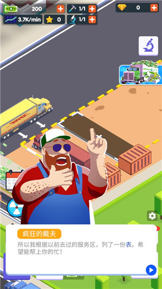 每个参与者都从经营一个小型加油站开始业务,并通过建立包括住宿和卡车服务店在内的众多设施来扩展业务。通过升级加油站和开放更多停车场,玩家可以建造洗车、餐厅、浴室和便利店等其他建筑