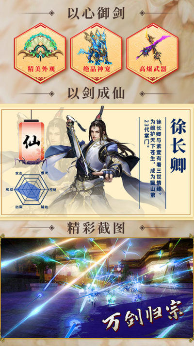 1、充满仙侠画风来描绘整个游戏的场景享受各种御剑飞行带来的快感;