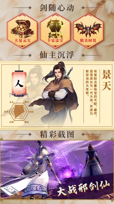 《仙剑3之邪剑仙》是一款仙剑系统MMORPG手游,完美还原影视中人物及剧情,加入了全新的游戏内容,带你重温仙剑3的剧情。自由选择喜欢的角色,解锁角色的专属剧情;多样的副本玩法等你体验,享受战斗带来的刺激感;各种宠物坐骑自由捕捉,极品的神兵利器自由获取。全新的法宝系统,佩戴增强玩家的属性加成。遨游在这六界中,自由的闯荡提升自身的实力。