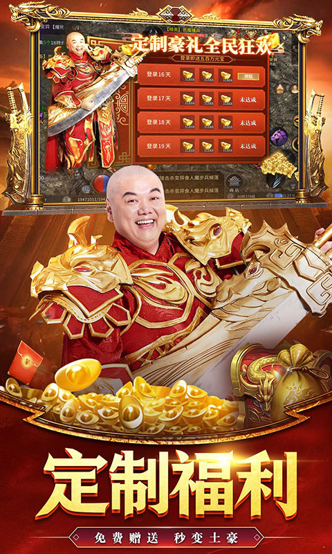 游戏带我们畅玩传奇战场,复古1.76,还原大家熟悉的沙城,职业,自由转职进阶冒险战斗,打造极品神器,畅爽PK,称霸沙城世界