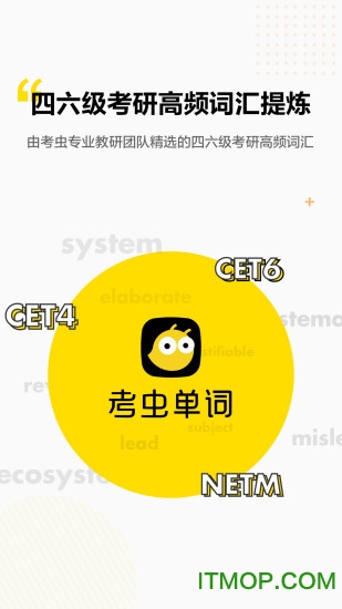 考虫单词天天背app下载,一款为广大备考大学生打造的四六级考研英语学习平台,通过备考考虫单词电子版可以随时随地学习,更加全面的高频词汇,名师讲解辅导,欢迎下载