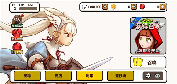 3、PVE的内容包括地下城、古代图书馆和强盗镇压。每次您的竞技场积分提高时,就可获得宝石!战斗以赚取升级材料,宝石和金币,不断培养英雄