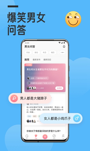 【男女问答】提出你的问题,得到来自另一半的回答,分享你的答案,让对面的女孩/男孩,知道你的想法。更高效简洁的提问功能,答案性别区分,男生的问题,女生答,女生的问题男生答,不仅有趣更有灵魂想法。