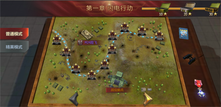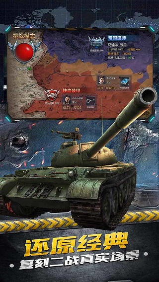 游戏模拟二战时期的坦克作战。玩家将在游戏中驾驶一辆辆的坦克与敌人展开作战,游戏玩法丰富,具有战役关卡、无尽挑战、金币副本、功勋副本、升星副本等多种PVE玩法