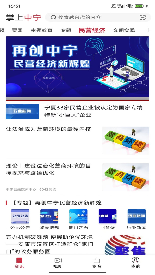 汇集中宁县方方面面的新闻内容,让用户可以时时刻刻掌握中宁的新闻,了解中宁的发展;软件提供实时新闻直播、专业的新闻报道、原创视音频、生活服务等各种功能和资讯,保障用户可以快速知晓中宁乃至全国的新闻事件;在应用的首页中会展示全国重要的新闻,实时更新最新的新闻内容, 随时进入阅读了解;也有不同的中宁新闻栏目,包括走进政协委员、书香中宁、百姓事等栏目内容,可以进入一起互动讨论,了解不一样的中宁,可以在这里了解不同的中宁内容