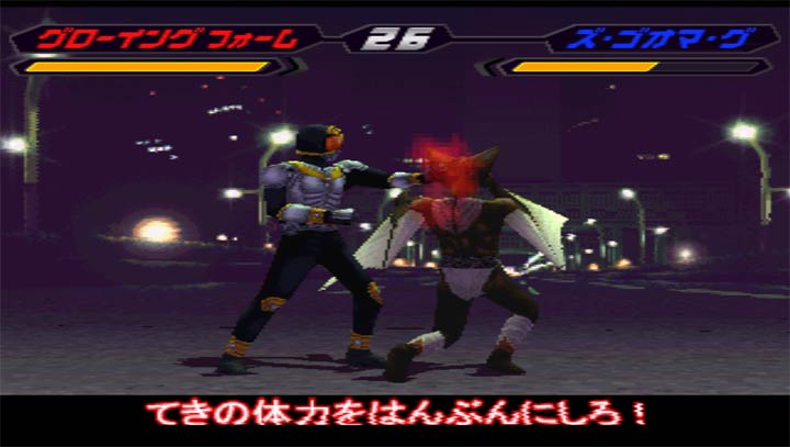 游戏共有总计15名假面骑士角色供玩家选择,对战采用的是3D背景平面格斗形式,并提供单人模式和最大支持2人的多人模式