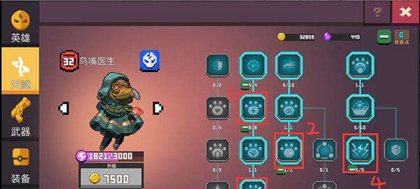 按照途中的顺序进行加点的,核心就一点,全点伤害,在1和2都点完后,你的输出会非常爆炸。