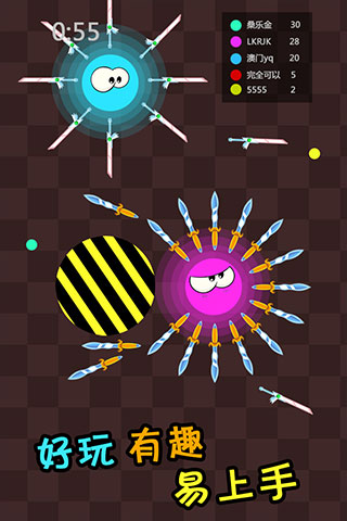 在限定的时间内,控制自己手中的刀剑,以最快,最风骚的走位来干掉你的对手,争夺王者,除了你之外,其他的全部都是敌人,时刻小心着其他玩家对你发动攻击