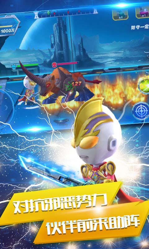 源计划奥特超人是根据经典动漫奥特曼改编而来的一款动作竞技手游。奥特曼要维护正义,就必须不断增强自己的战斗力!与不同类型的敌人战斗,要注意采用不同的武器和随从哦。游戏内玩法多样,限时打怪兽、1对1PK大BOSS、或是消灭一定数量的怪兽,多种玩法任你挑选!趣味合成,超酷炫的战舰和武器,分别针对不同类型的怪兽。武器激活后还可以通过洗练大幅度提升属性,没有最强,只有更强。你也将拥有专属伙伴,近战的、远战的、肉盾的、机械的…超多伙伴可供选择。根据boss挑选伙伴,才能发挥最大的效用!达到一定等级后,还可以让伙伴转职,更好地适应战斗!