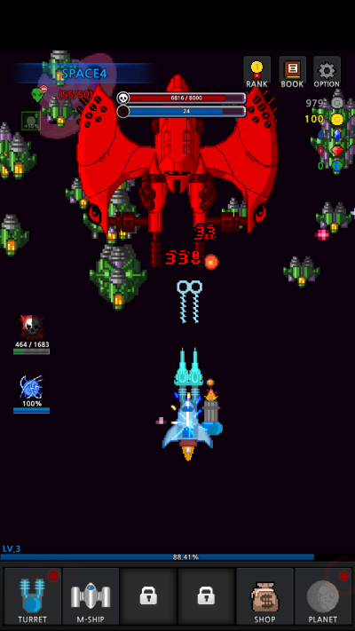 通过在船上制造拦截船来摧毁敌人,在收集许多敌人时使用你的特殊技能杀死敌人,通过行星战斗,boss攻击来证明你的实力,这是是一款复古射击游戏。