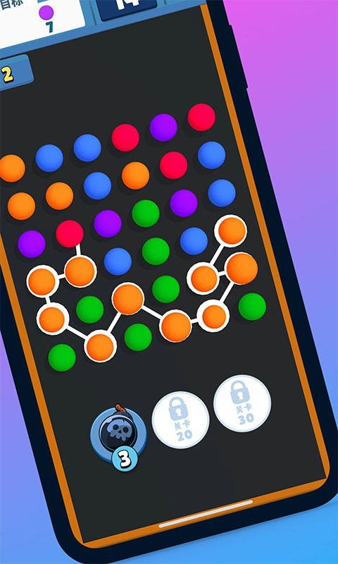 开心连球球(Collect Em All)非常有趣的连线消除游戏,在游戏内,找到相同的方块,将它们用线连接起来,就可以成功将它们成功消除,在规定的步数内,完成挑战,就算闯关成功,还有各种道具可以使用,帮助用户更加轻松闯关!
