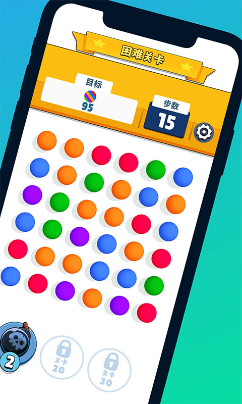但是玩起来十分上瘾的消除游戏,清爽的游戏界面,没有乱七八糟的广告,让大家能够纯粹的沉浸在消除的快乐中,简单的移动不同的球球,组成相同的颜色去消除,游戏有步数的规定,需要的步数越少,你的积分越多,奖励越高