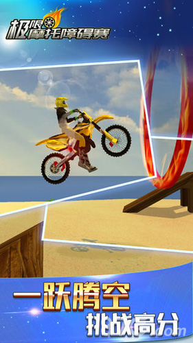 玩家需要扮演一位特技赛车手,驾驶摩托越过多种障碍获得胜利,还有多种特技动作可以加分,更有百种改装等你来个性涂装自己的摩托车
