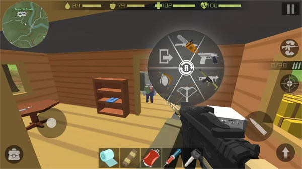 5、场景的设计非常的有趣,像素方块风增添了射击的乐趣,无论人物还是僵尸,整体的造型都很独特
