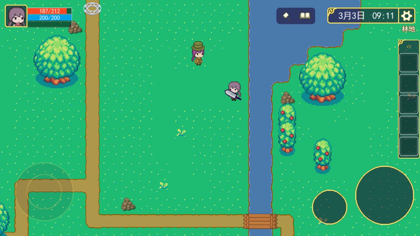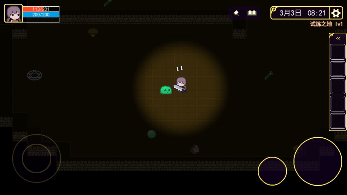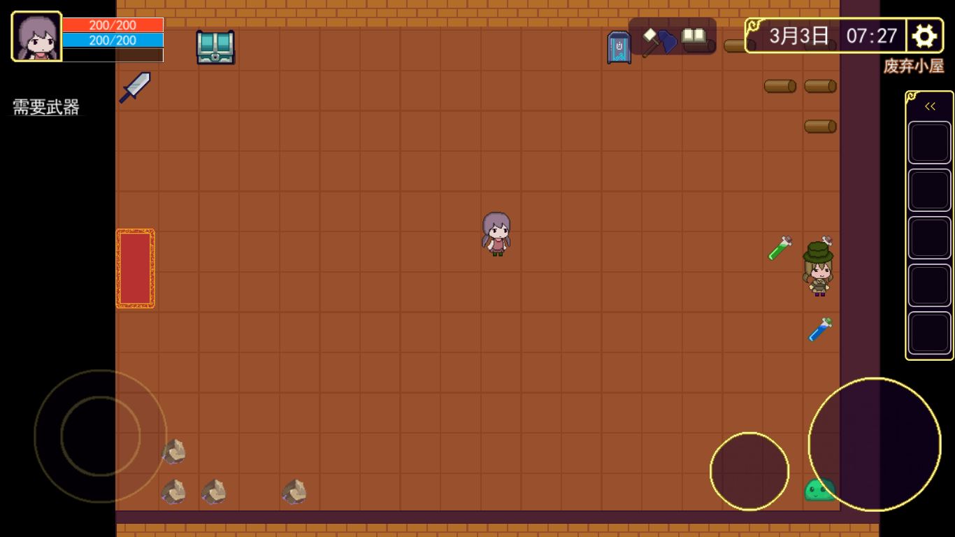 这是一款非常简单的rpg养成游戏,游戏中玩家落入一个魔法的世界,你需要在这个世界中生存下去,不断的探险找寻宝藏机遇,同时和这个世界的怪物战斗,游戏还可以学习炼金、采矿、种田等,小小的游戏却包含着大量的内容。