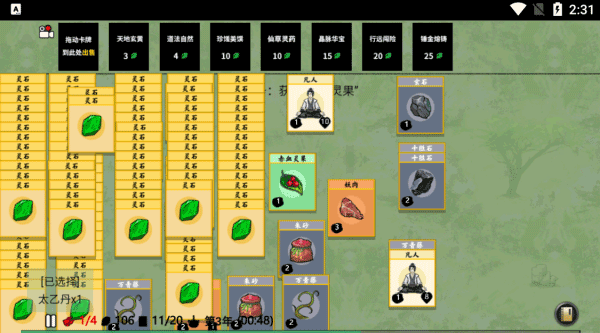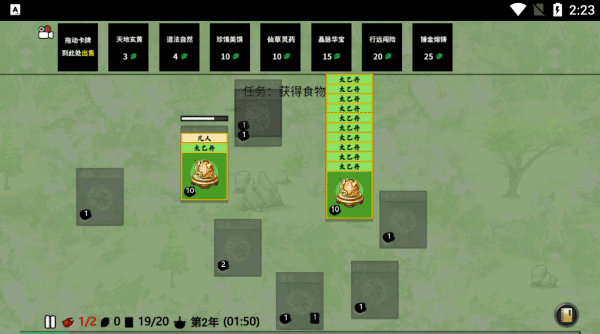 1、我们需要通过卡牌发出各种指令来完成各种不同的修仙任务。