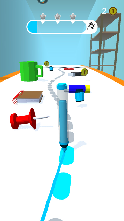 玩家需要指挥彩笔不断的前行,沿途躲避各种危险,成功到达终点。清新融洽的背景颜色,每一处场景都搭配的非常完美,超多趣味关卡等你来挑战