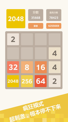 你会在这里了解更多新颖的趣味玩法,体验这种原汁原味的快乐,你的终极目标就是合成2048,每次闯关的过程都是非常消耗脑力的,好好思考一番才能找到最正确的办法,在这里顺利的过关就是目标哦