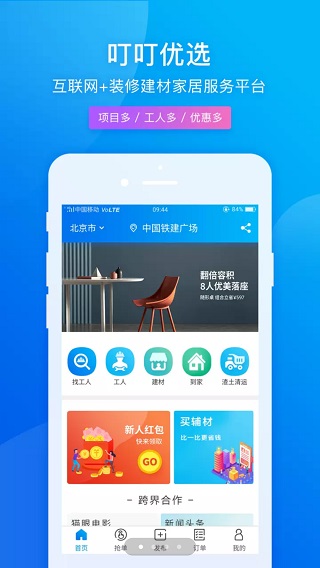 叮叮优选app是一款同城移动分类信息及购物软件,运用互联网+模式及大数据整合工长、工人、装修公司、及建材商家等多种资源,帮助工人找活、工长及装修公司找工人买建材、建材商家找客户等问题。解决行业信息不对称,招工难、找活难、建材采购难等装修建材家居行业痛点,改变整个装修家居产业链关系,为用户省时、省力、省钱。