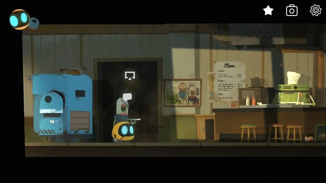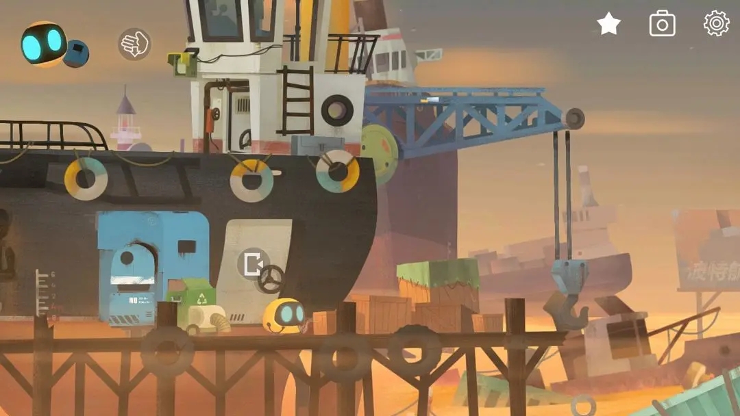 出门后右拐,绿色机器人会跟着艾比,进船舱