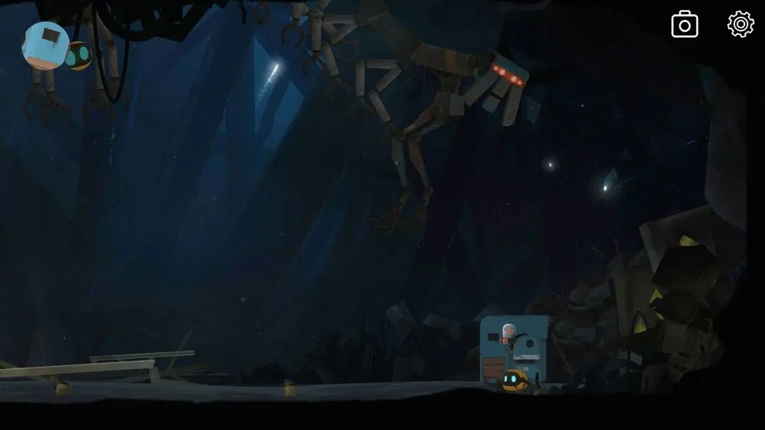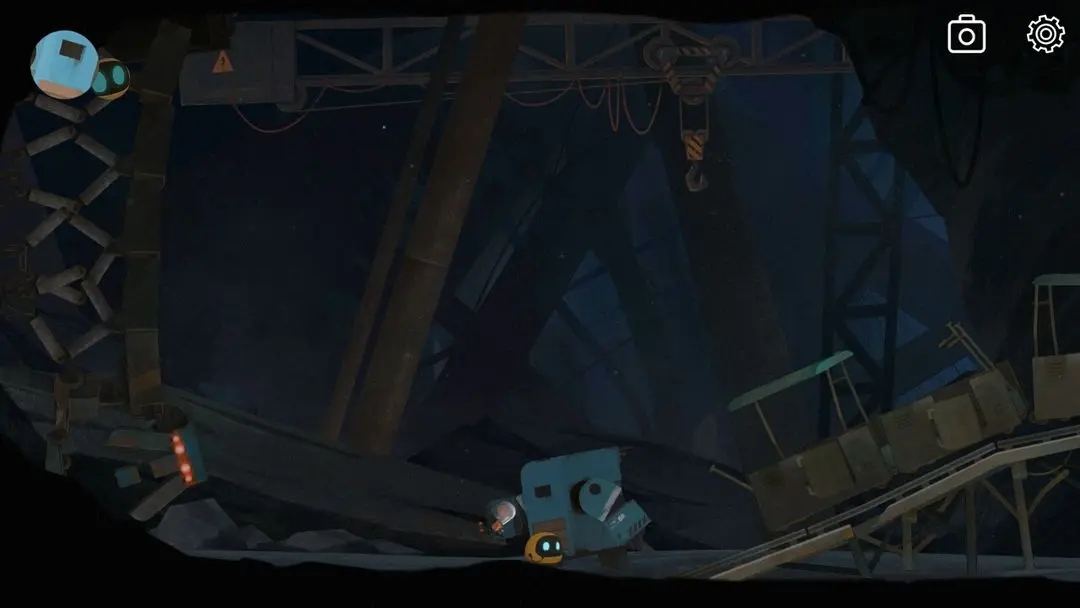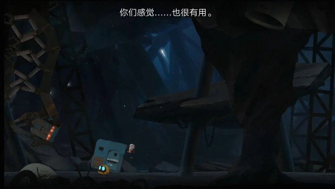 发现一个被管道压住的机器人,艾比搬不动,于是叫来迪迪