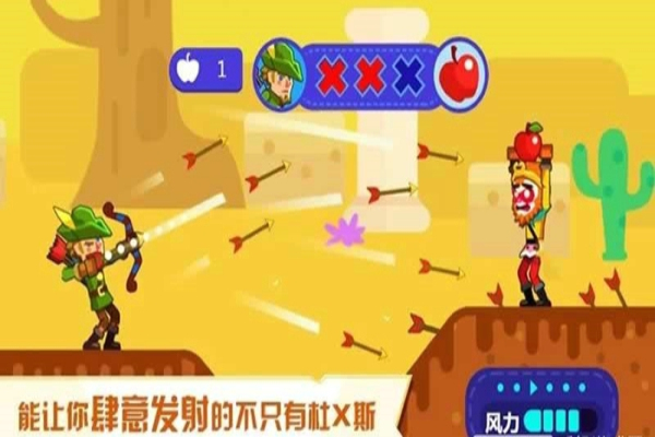 游戏需要控制好力度才能使弓箭射中敌人,在自己倒下之前,将敌人击败