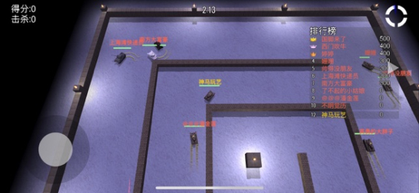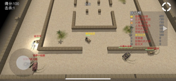 1.用摇杆控制坦克移动,点击屏幕射击对手。