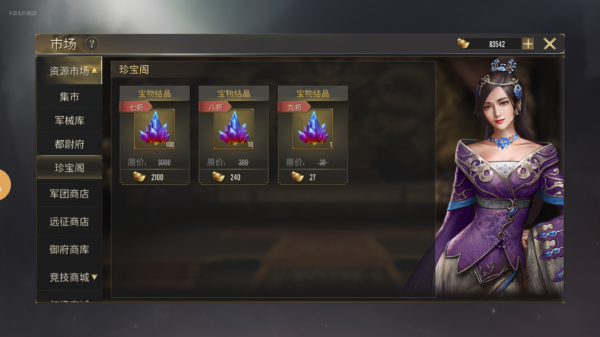 5、30级开放珍宝阁,珍宝阁中出售稀有道具。珍宝阁中每日会重置商品折扣