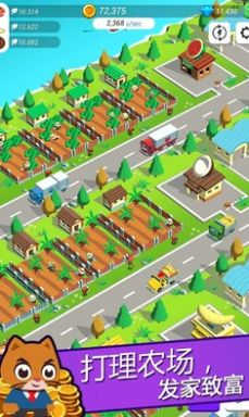 它是模拟休闲游戏,游戏中玩家角色是一只猫,经营着自己的农场,在农场什么都需要自己打理,你需要自己去播种种子,收取果实,什么事都自己来,然后卖出去修建扩大你的农场面积。