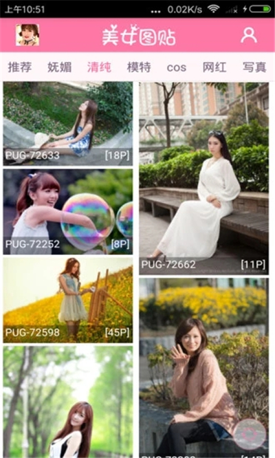 2.美女分类超详细,有清纯、可爱、校花、旗袍、各路明星...只有你想不到,没有本应用找不到;