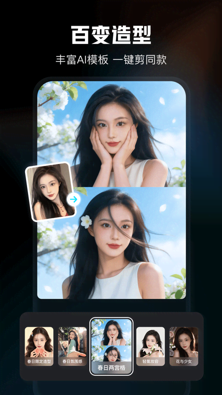 操作简单,用户选好模板后点击剪同款,上传对应照片/视频素材即可一键生成炫酷大片。