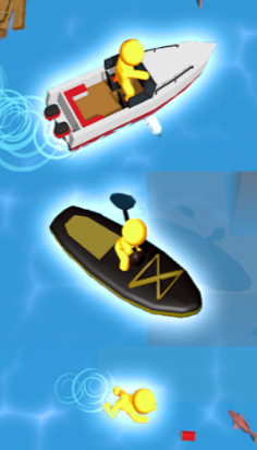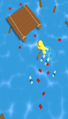 建造木筏中你需要在海面上收集足够的资源来建造自己的木筏,你的木筏周围有许多的透明方块,显示着扩展需要的资源和数量,海面上有许多的资源可以拾取,你也可以和其他的玩家进行对战,胜者接收对方所有的资源,大大加快自己的闯关速度。