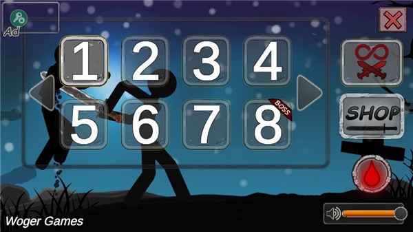 7、在关卡挑战模式中挑战不同的难关,获取积分来解锁不同的火柴人