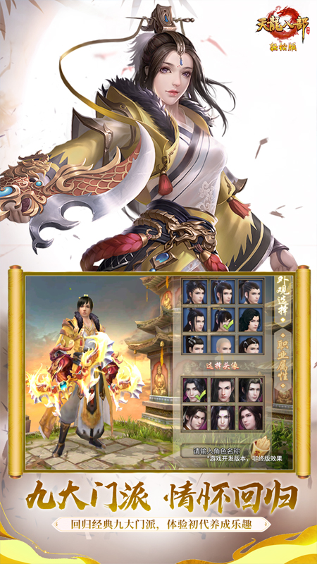 经典的游戏剧情,熟悉的武侠人物,多种不同门派等你选择,海量职业等你随心搭配,还有超多神兵利器等你亲手打造