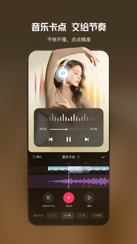 1、快影可以添加多段音乐到视频作为背景音乐,让用户的作品更加的完美