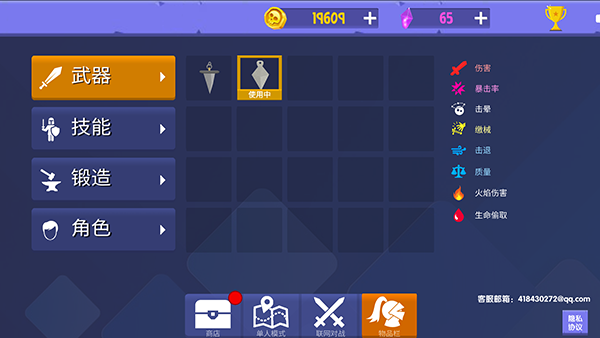 1、进入游戏后可以玩的单机游戏有三种模式,分别是故事模式、生存模式、训练场,当你技术和装备等级高了之后就可以进行联机对决,挑战其他高战玩家