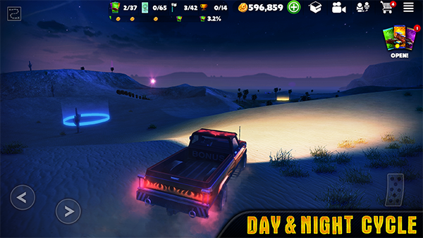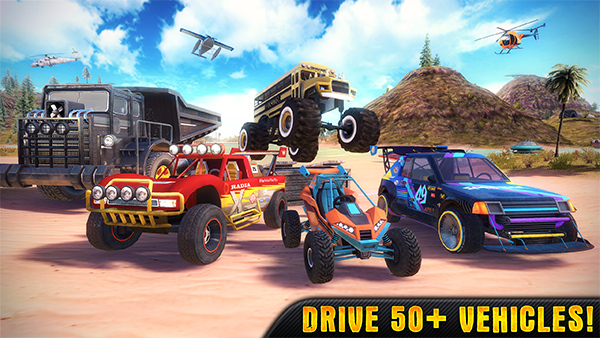 3、驾驶:随着几个开放的世界地图可供选择,你可以驾驶你的装备跨越慢摇滚具有挑战性的路线,或者快速过沙漠的沙子持平。要采取从小径休息一下?在特技公园去玩,你可以使用斜坡“测试”你的装备的耐久性,或测试你的技能drivings在岩石园。