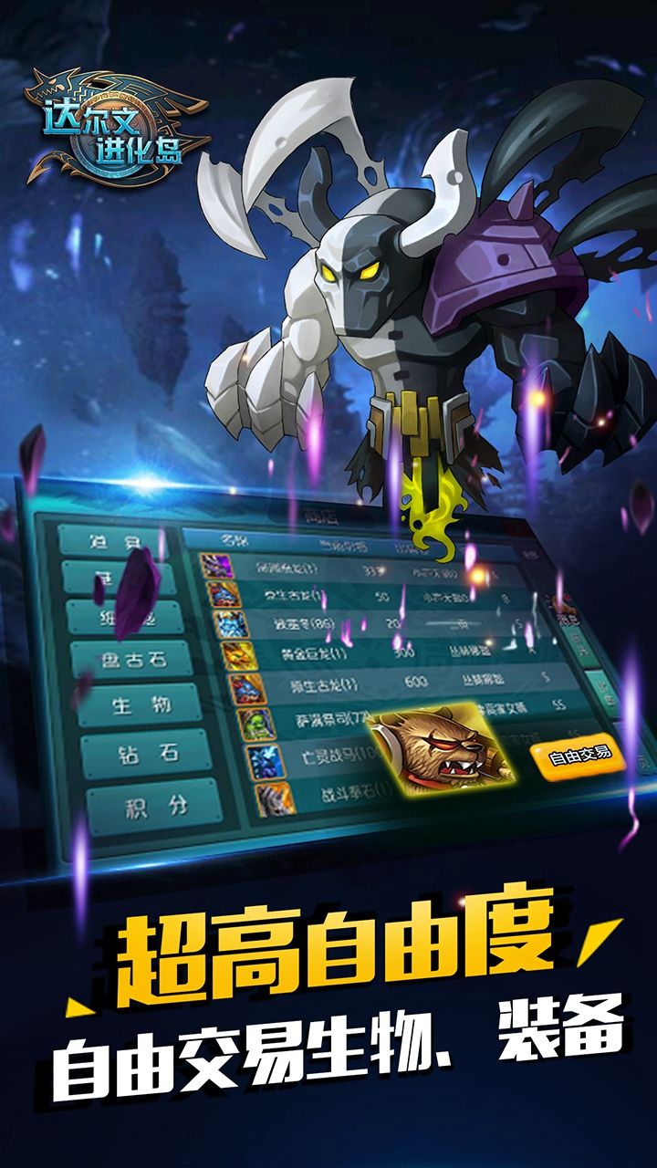 超高自由度,自由交易生物、装备。