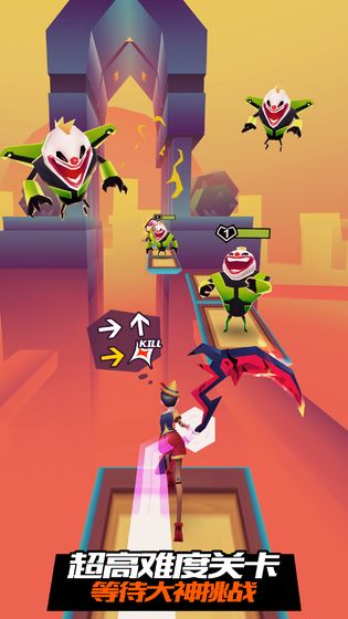 在传统躲避跑酷的万发中加入了更加有趣的战斗环节,玩家将控制一个疯狂的小太妹(金克斯就是你)在充满刺激的战场上击败邪恶的小丑大军,超多酷炫夸张的道具等你解锁,还有百变时装等你来战