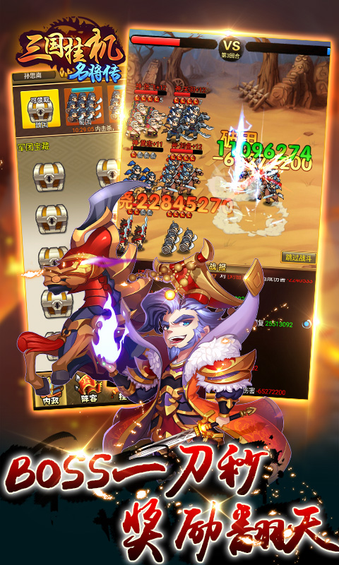 游戏中包含了大量三国时期的名将,每位武将都有独特的技能和属性,玩家可以收集和养成喜爱的武将,培养自己的最强阵容。