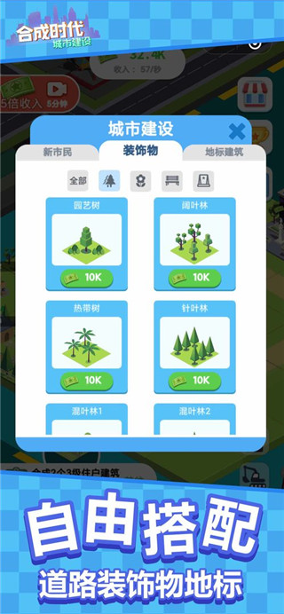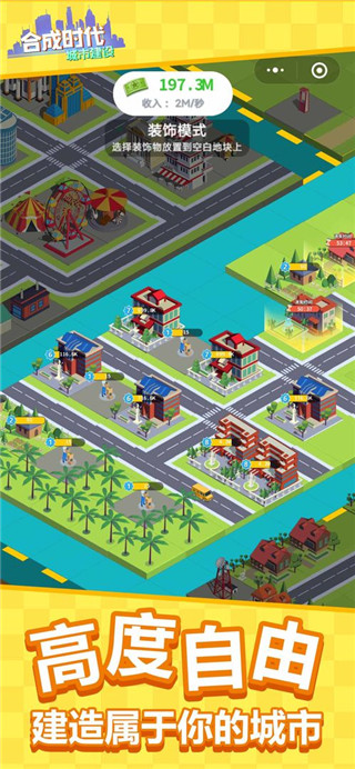 合成时代之城市建设,游戏以“合成+城市建设”为主要设计思路,用户通过合成不同等级建筑,可以自由建设城市。