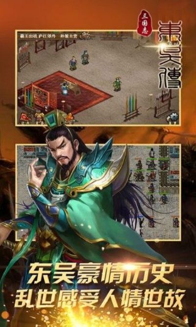 三国志东吴传是一款RPG+SLG单机游戏;游戏以三国为题材所打造;古语有云:合久必分。分久必合。在游戏中你可以扮演东吴君主孙权,带领一大批文成武将:骁勇的关羽、张飞、马超、典韦、赵云、张辽、吕布、董卓,长于谋略的诸葛亮、鲁肃、司马懿、郭嘉,攻城略地、争霸天下。在这里,你就是运筹帷幄、决胜千里的领袖;在这里,你就是英雄无敌、海纳域内的君主;在这里,你就是战无不胜的战神!