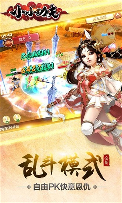 小小功夫是一款可多人对战的角色扮演类手游,该款游戏以武侠为题材,游戏人物Q萌可爱,画面清新脱俗,抛弃枯燥的打怪升级玩法,采用结盟对抗BOSS,以及玩家PK等全新玩法,一场江湖的腥风血雨在等着你!