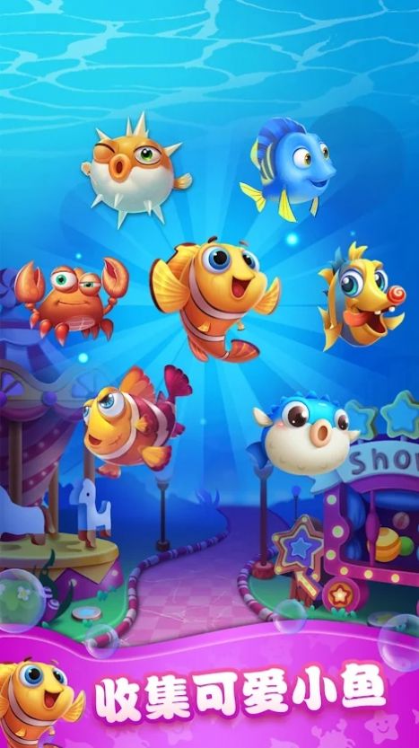精美水族馆游戏界面,融入了好玩的接龙游戏玩法,简单操作,收集各种不同的小鱼,丰富的你的水族馆,游戏内容丰富