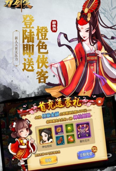 《刀剑笑》是一款古风武侠题材的手游。游戏非常的新颖有趣,奖励多多,游戏中有很多金典人物任你选择,还加入了武侠功法和布阵系统等。超百变得战斗玩法和各种不同的技能效果等你来体验,感兴趣的玩家赶快下载吧!