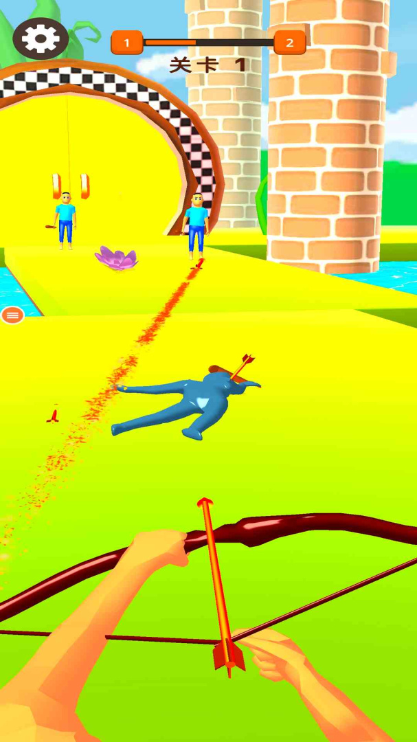 1点击屏幕任意位置开始拉弓,拖拉轨迹线以调整角度和力度,瞄准敌人头部,射中头部后出现暴击伤害,请开始你的暴击之旅。
