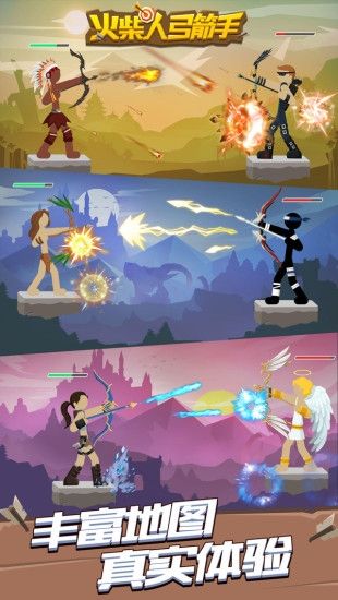 2.火柴人弓箭手采用简洁清新的游戏风格营造轻松诙谐的游戏氛围。丰富的游戏场景和各具特色的武器给玩家畅爽游戏体验。