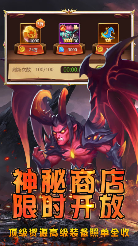游戏虚构了超大的魔幻大陆,更设有百变造型的英雄,玩家以收集角色为主,以地图模式玩法为辅,出战英雄挑战,可一键挂机,回合制战斗,开启炫酷对战,开启各种冒险挑战体验