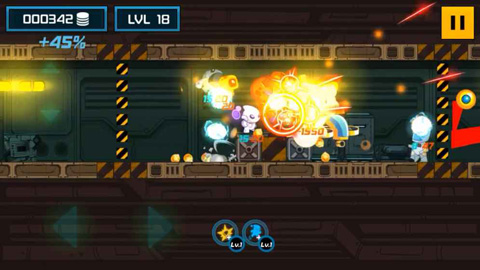 游戏中有着各种不同能力的外星人可以选择,玩家需要控制角色在各种高低不平的平台上射击敌人,解救被绑架的外星人