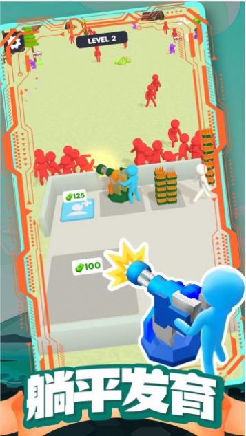 1、结合了多种不同的玩法元素,躺平发育,提高实力,疯狂射击;